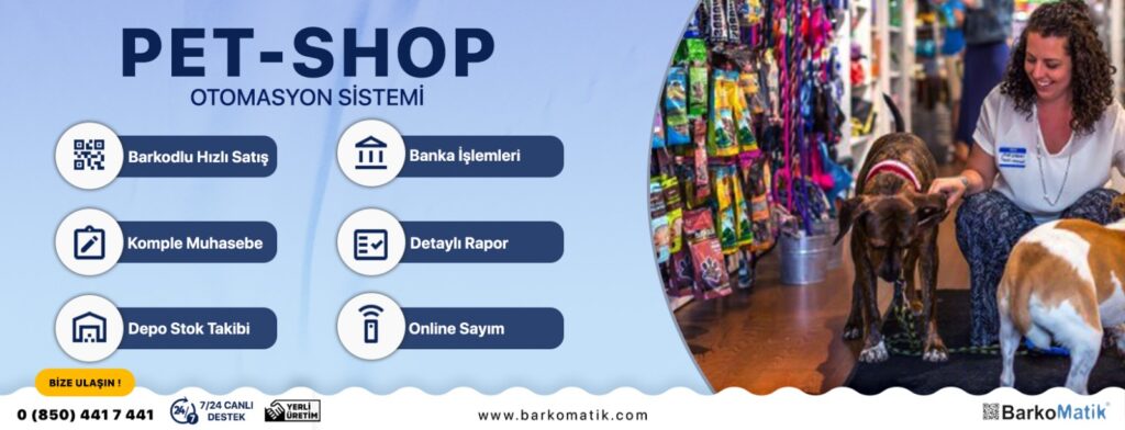 Barkomatik Petshop Otomasyon Sistemi, petshop işletmelerinin stok, satış, müşteri ve raporlama süreçlerini tek merkezden etkin şekilde yönetmelerine olanak tanır ve işletme verimliliğini artırır.